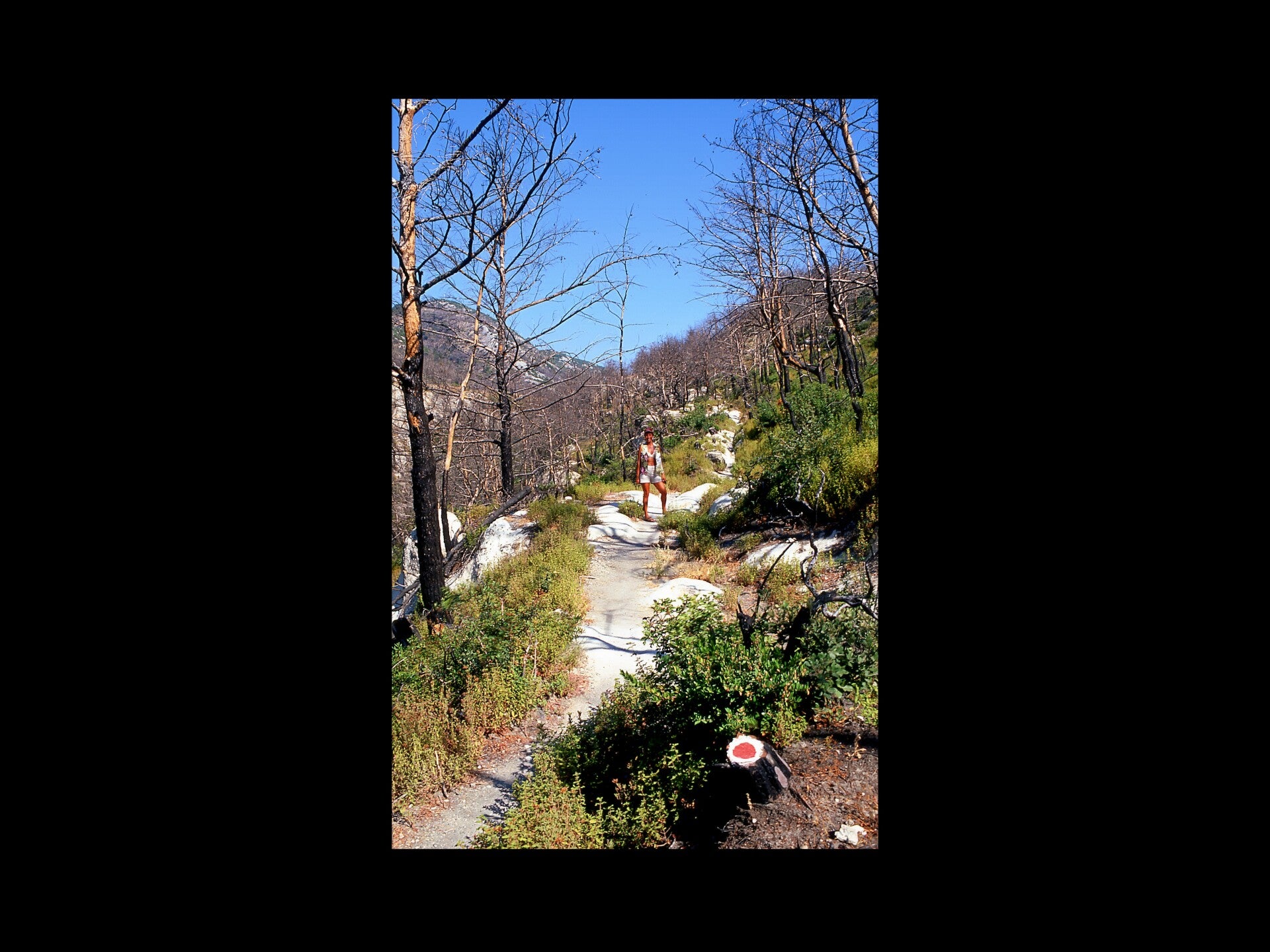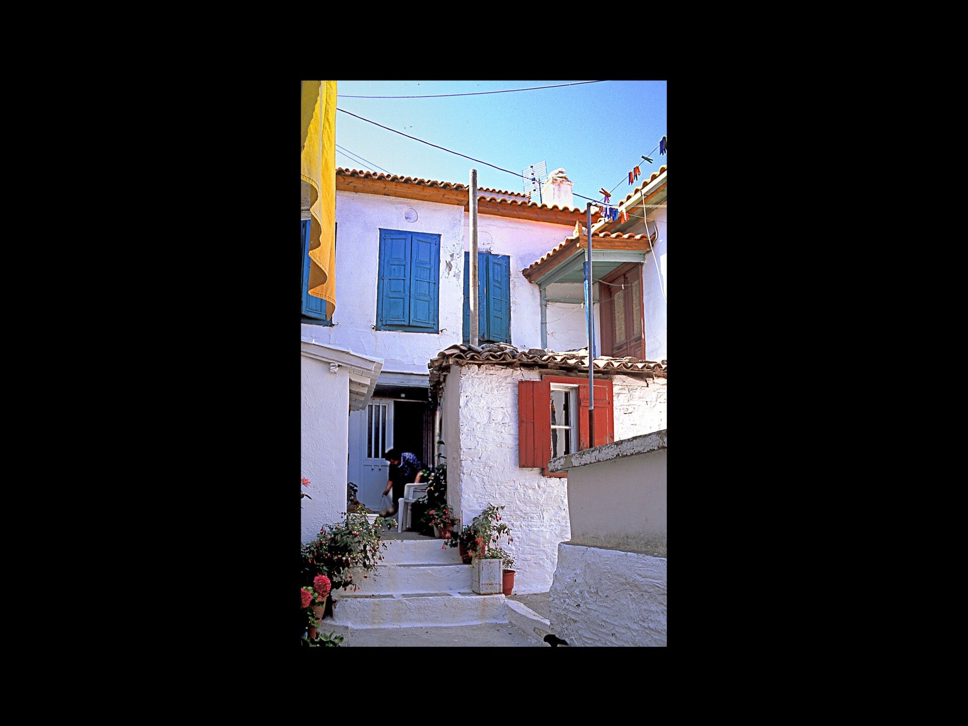 Het mooiste van dit eiland, schreef Lawrence Durrell, is de aankomst: het binnenvaren door de zeearm die naar de hoofdstad Vathy leidt. Verder vond hij het eiland a bit disappointing. Tja. Samos heeft weliswaar geen spectaculaire landschappen of bezienswaardigheden, maar het is een vriendelijk ogend en prachtig groen eiland - ondanks de veelvuldige bosbranden. Bij de grootste, in 2000, is een derde van de vegetatie van het eiland in vlammen opgegaan, maar tijdens ons bezoek in 2002 had de natuur zich al weer enigszins hersteld en konden we een wandeltocht door de bergen aan de noordkust maken.